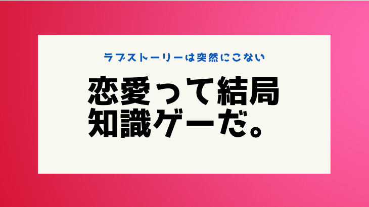 世の中結局は知識ゲーだ。 ラブストーリーは突然に来ないから 知識を振り絞って自分から作り出す必要があ […]